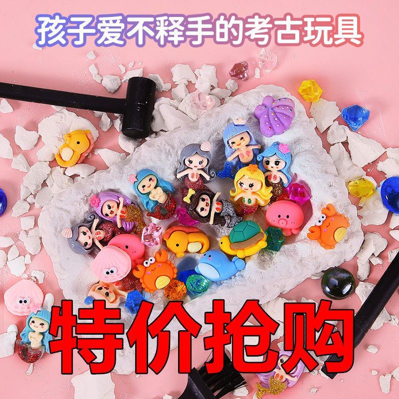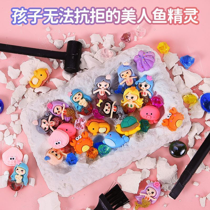 考古挖掘玩具美人鱼化石女孩儿童挖宝石小马宝莉宝宝手工益智礼物