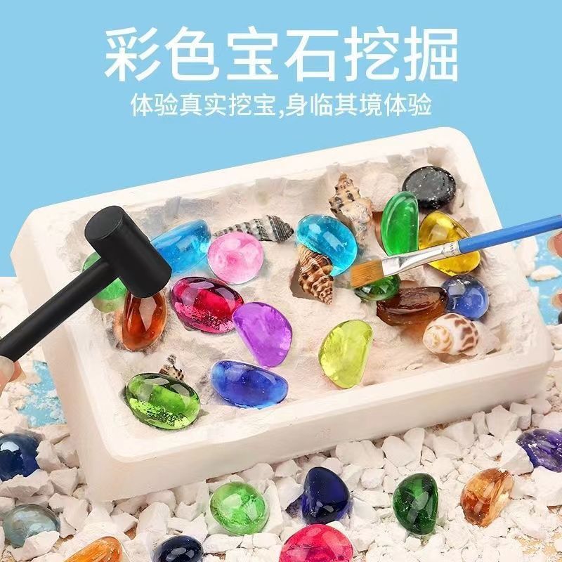 儿童考古挖掘玩具矿宝石膏盲盒男女孩手工diy寻宝藏益智敲砸化石
