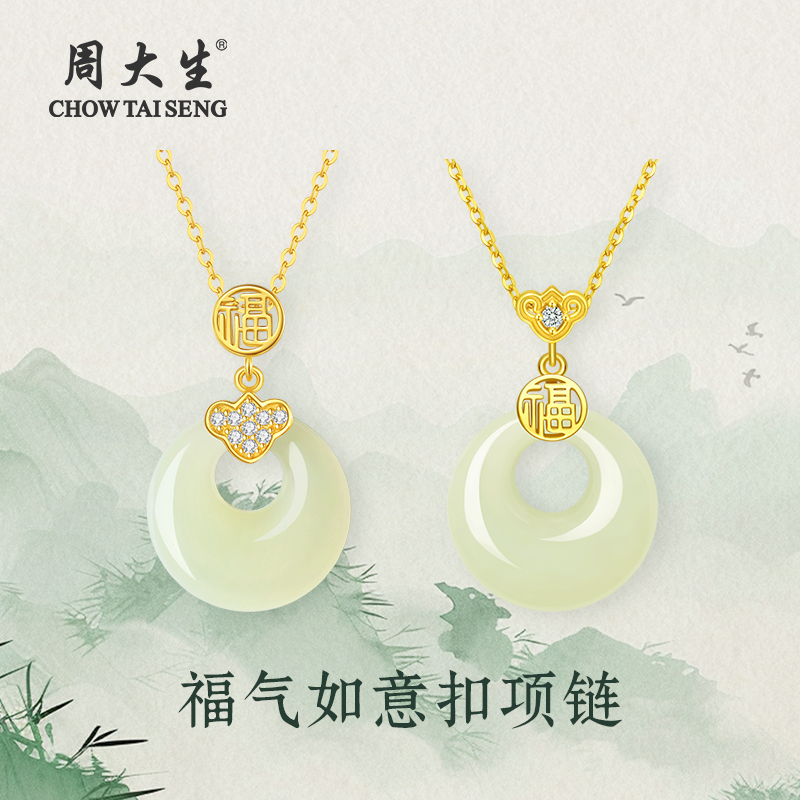 周大生福气平安扣项链女S925纯银玉髓吊坠轻奢配饰送妈妈生日礼物