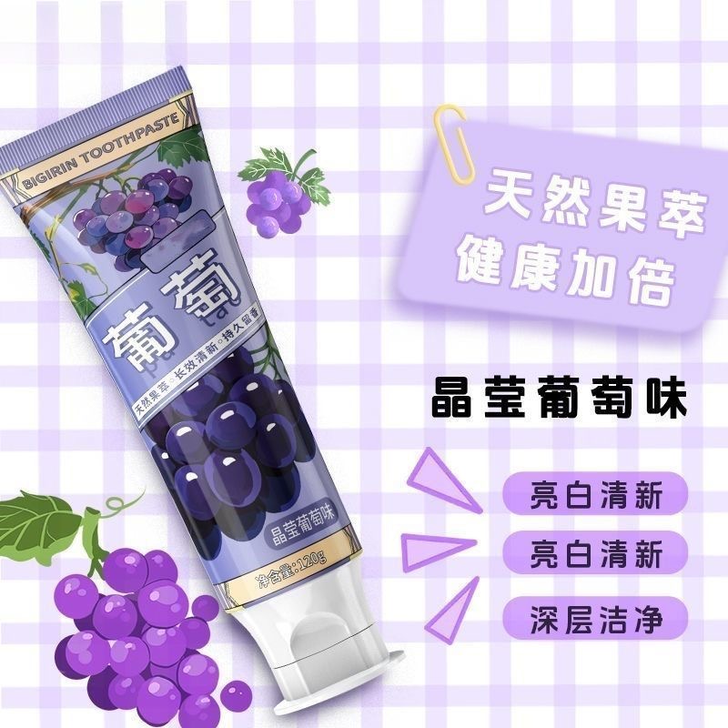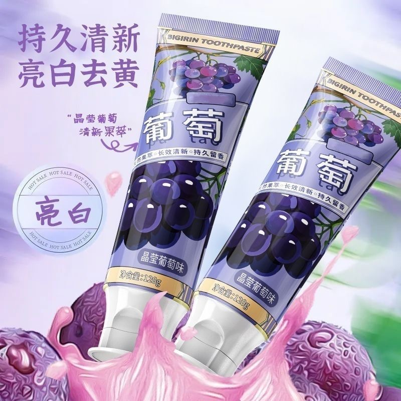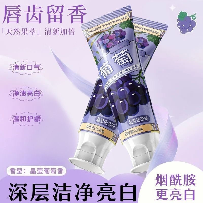 葡萄味牙膏水果烟酰胺亮白清新口气抑菌清洁白牙齿护龈家庭装男女