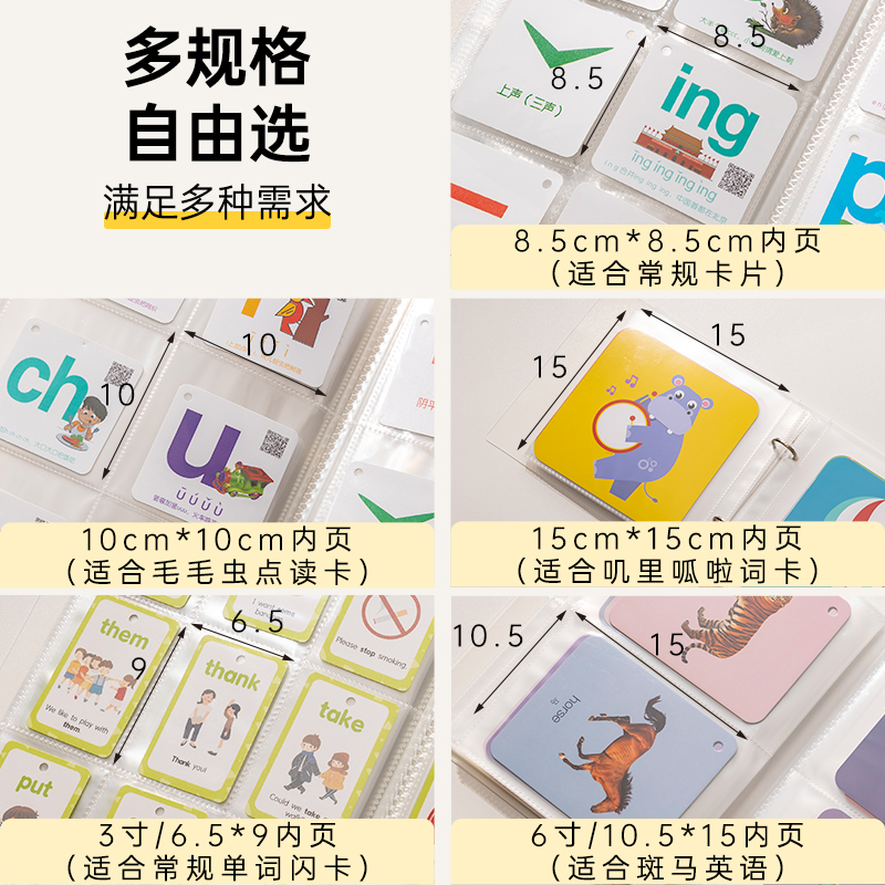 字卡收纳册儿童小识字卡收集册卡通装放卡片的袋子集卡册透明大容量幼儿园宝宝生字认字单词卡收藏本