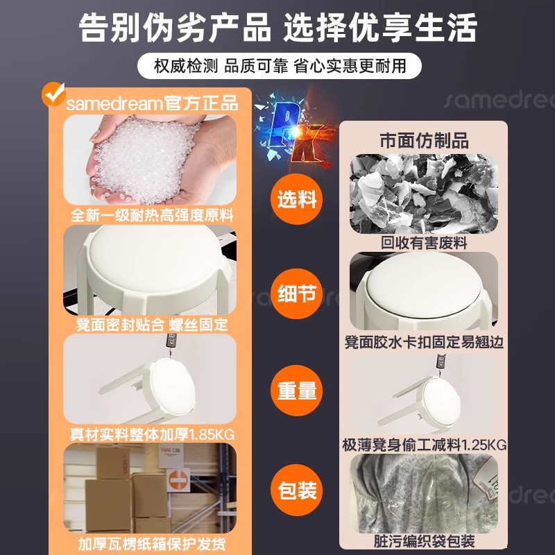 塑料凳子家用可叠放加厚高板凳软包圆板凳餐厅备用餐桌高椅子久坐