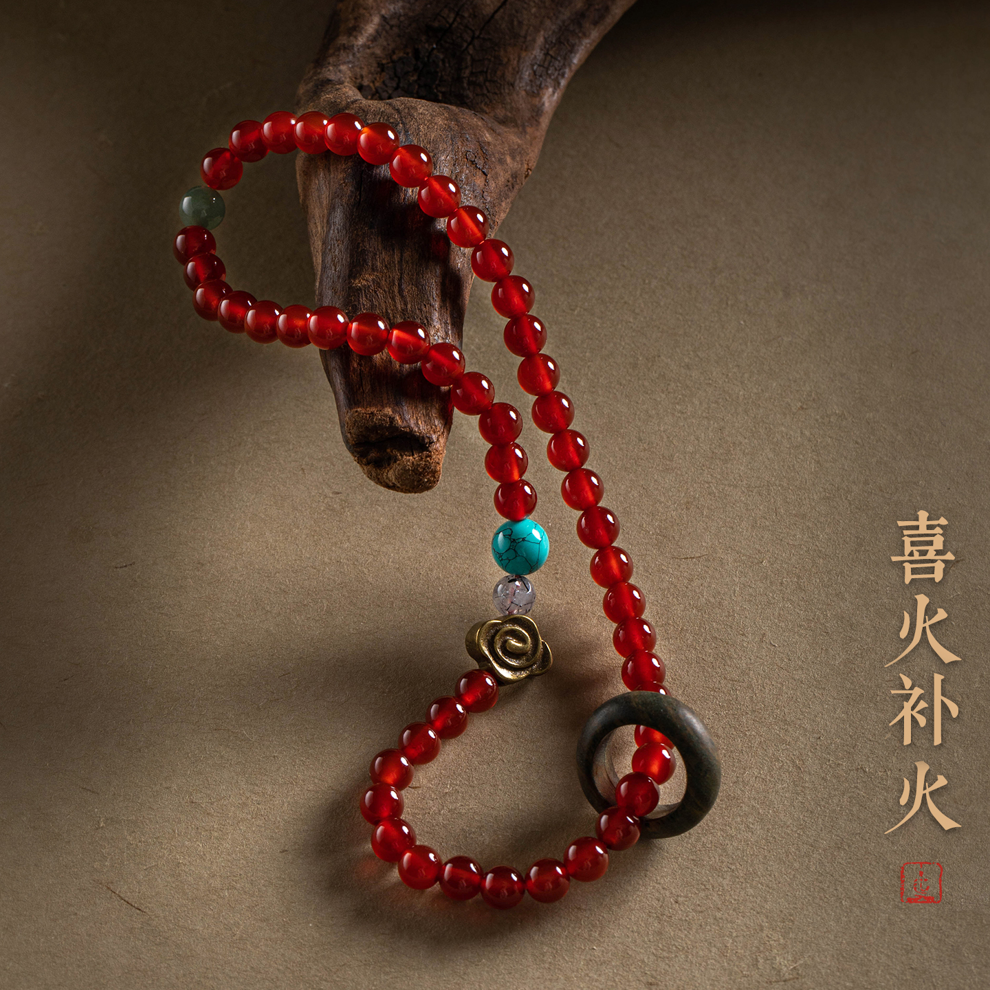 大善堂天然红玛瑙手串绿檀本命像手链多圈女款转运手饰国风礼物