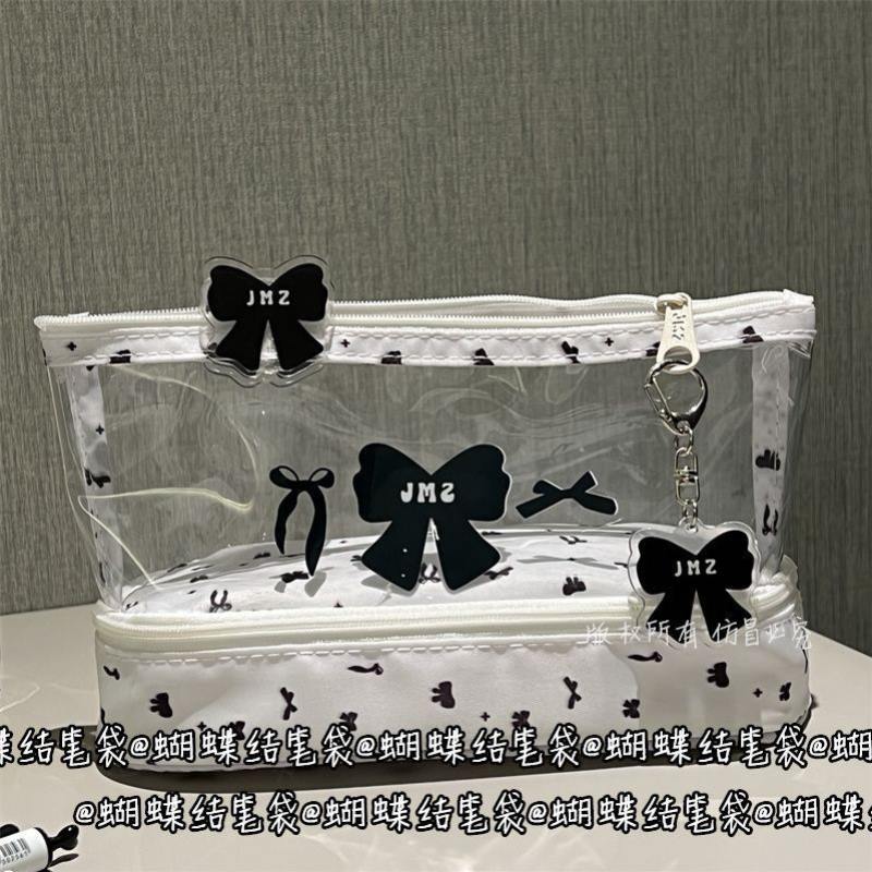 双拼黑蝴蝶结笔袋2025新款ins女生小众小学初中ins风高颜值学生少女心便携式大容量收纳笔袋文具盒铅笔袋透明