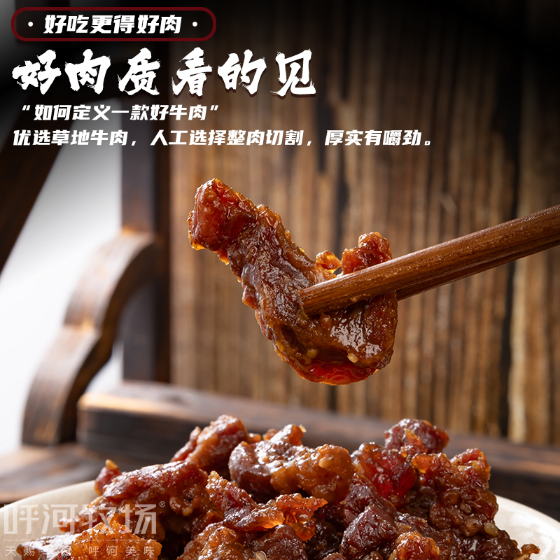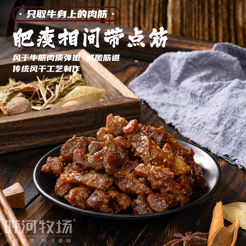 呼河牧场牛肉筋内蒙古特产开袋肥瘦相间即食速食小吃筋头巴脑零食