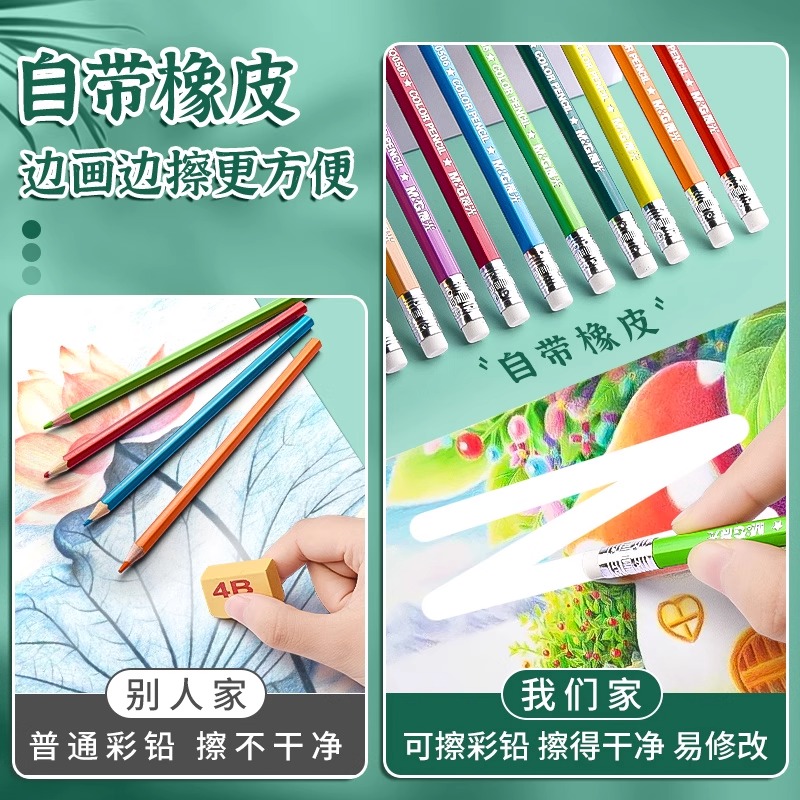 晨光彩色铅笔小学生专用彩铅可擦一二年级24色彩铅笔美术生48千绘画画画儿童幼儿园无毒48色12色初学者带橡皮