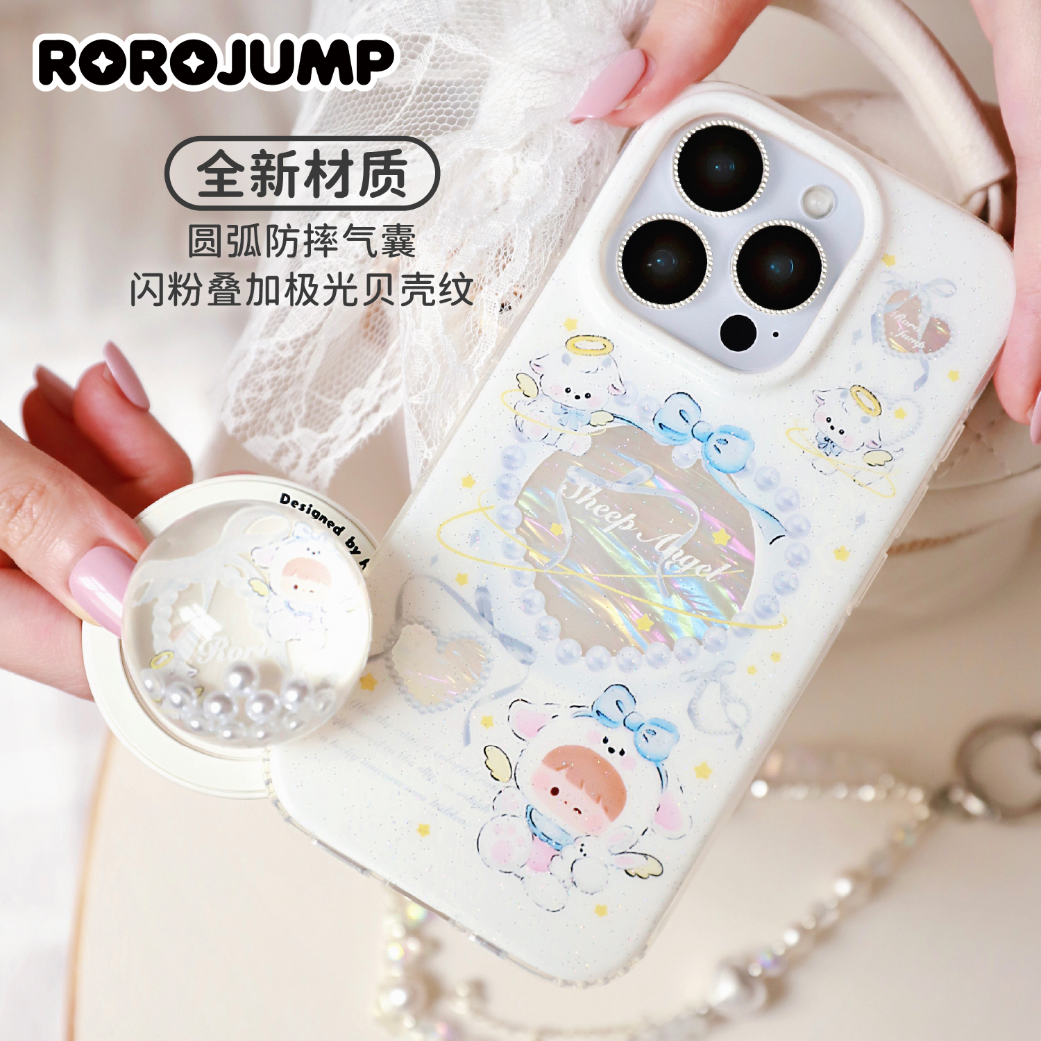肉肉酱天使与小羊适用iphone17promax磁吸手机壳苹果16pro保护套15防摔新款光面14贝壳纹闪粉卡通高级感白色