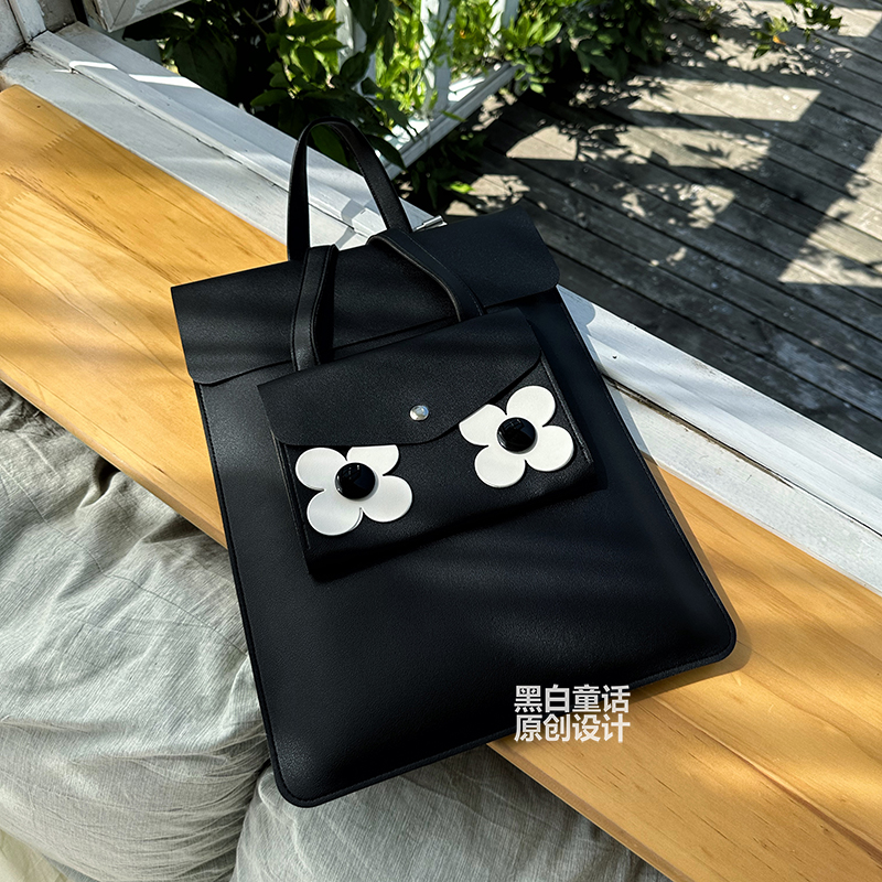 黑白童话轻薄pu皮质花朵笔记本电脑包16寸小众高级感简约收纳包适用苹果MacBook Air13.3寸pro华为mate14寸