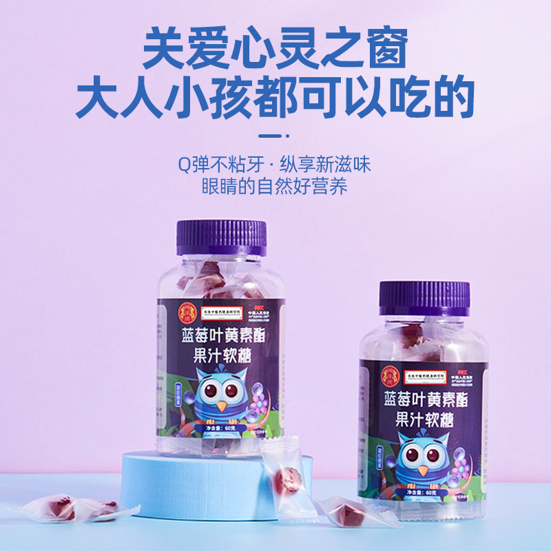 蓝莓叶黄素酯软糖60g瓶护眼儿童成人青少年官方旗舰店/蓝莓味糖果