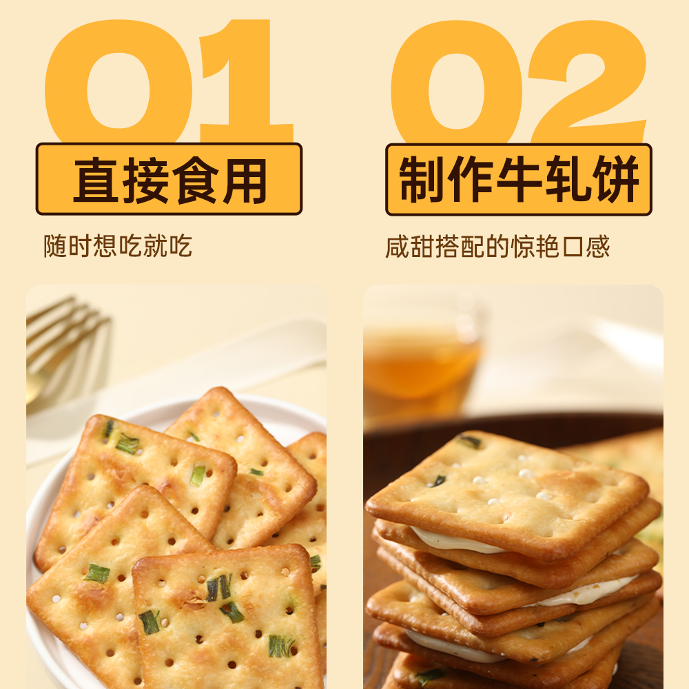 欲粮苏打饼干香葱咸味蔬菜梳打休闲小零食牛扎饼专用原材料真空装