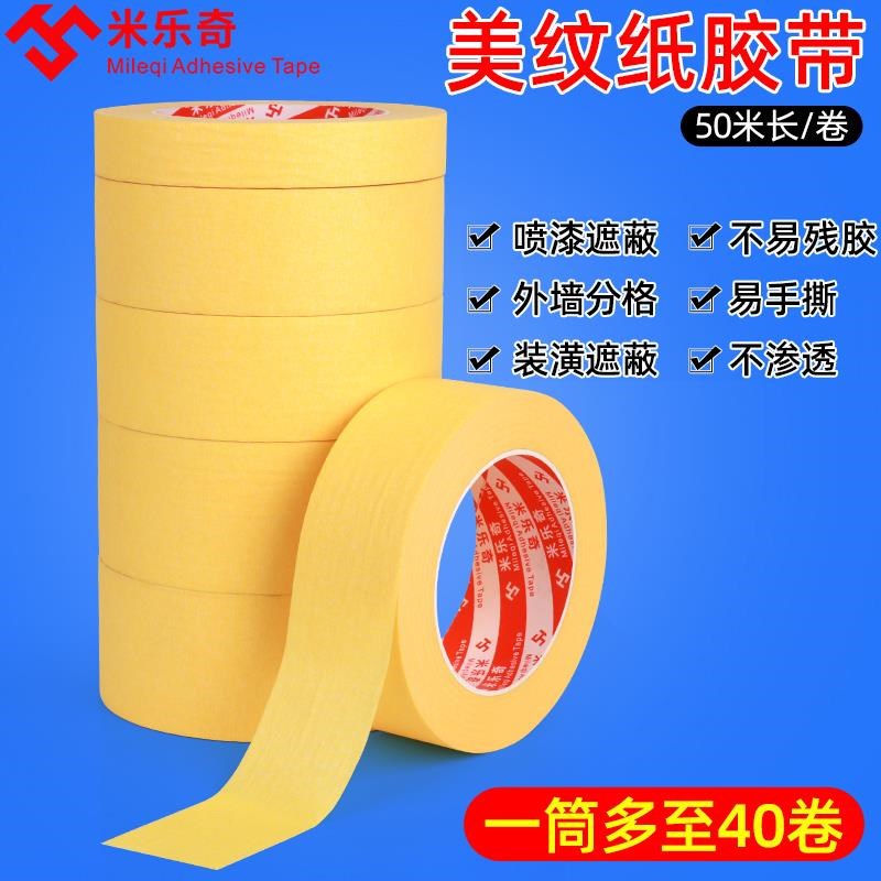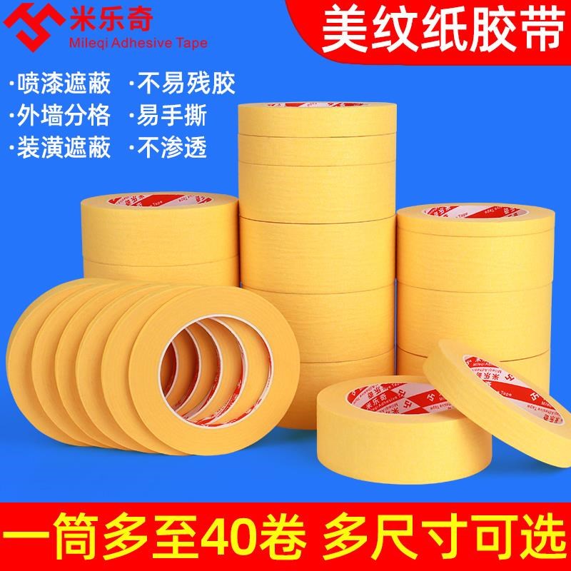 美纹纸胶带整箱高粘黄色美文分色纸烤喷漆装修遮蔽墙面50米汽