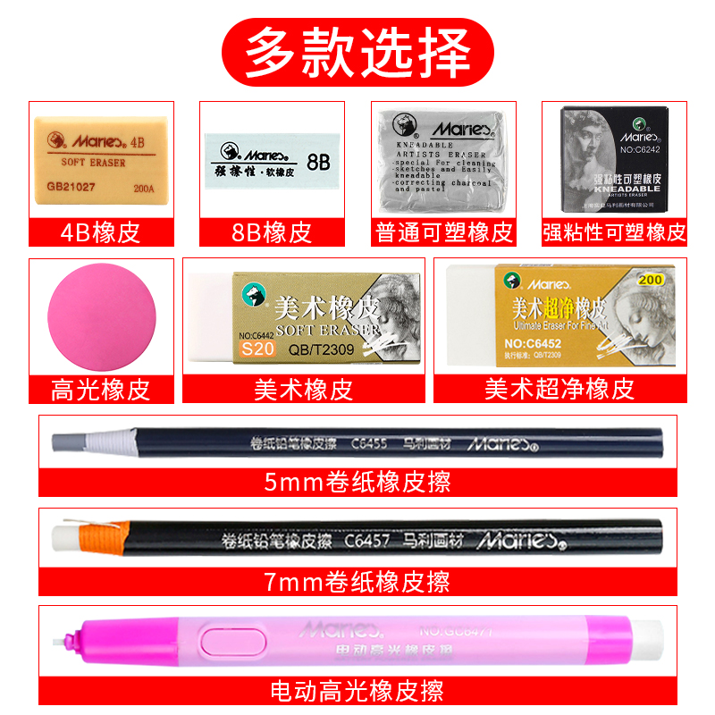马利牌素描可塑橡皮擦美术小学生文具专用用品不留痕4b橡皮高光象皮2b铅笔可素像皮檫2比可擦软橡皮泥可塑性