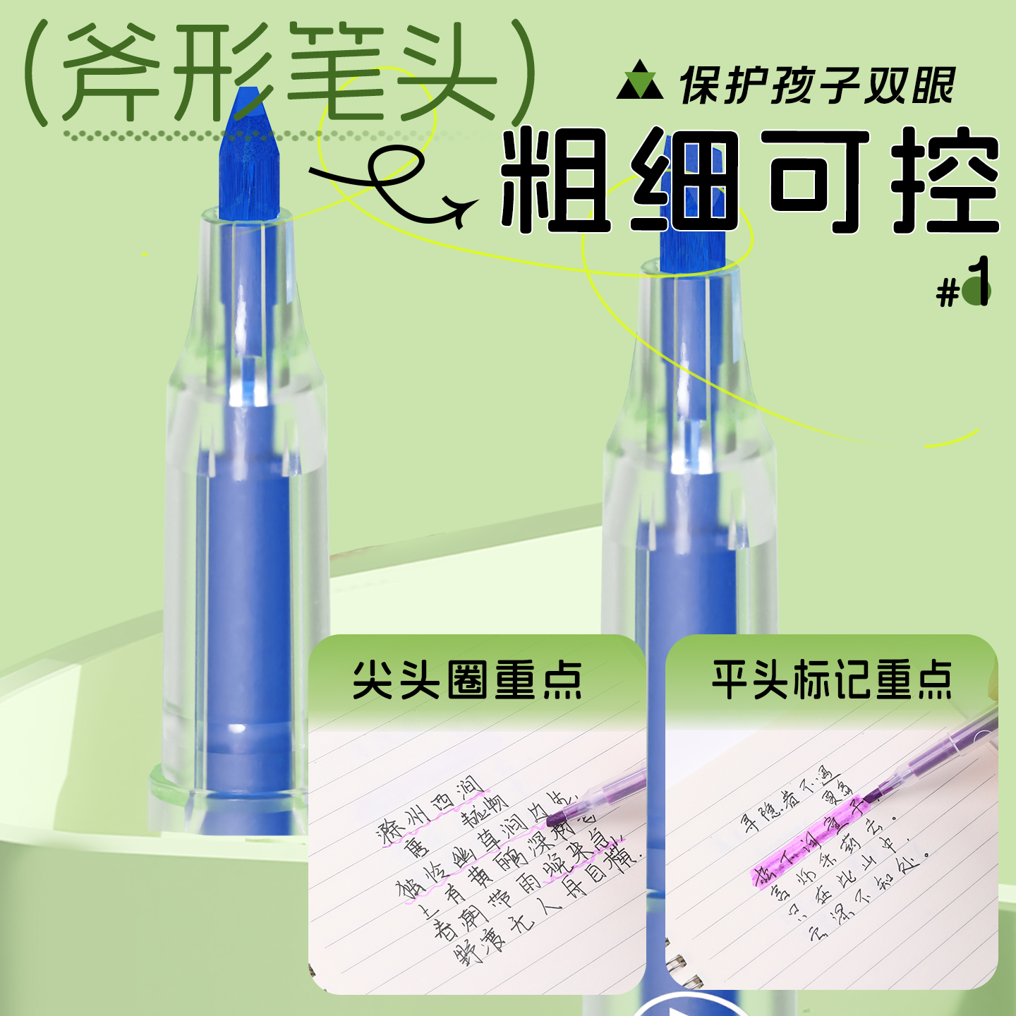 猫太子荧光笔小学生专用划重点可叠色记号笔彩色不晕染初中生高中生做笔记双头标记可擦高颜值ins风儿童无毒