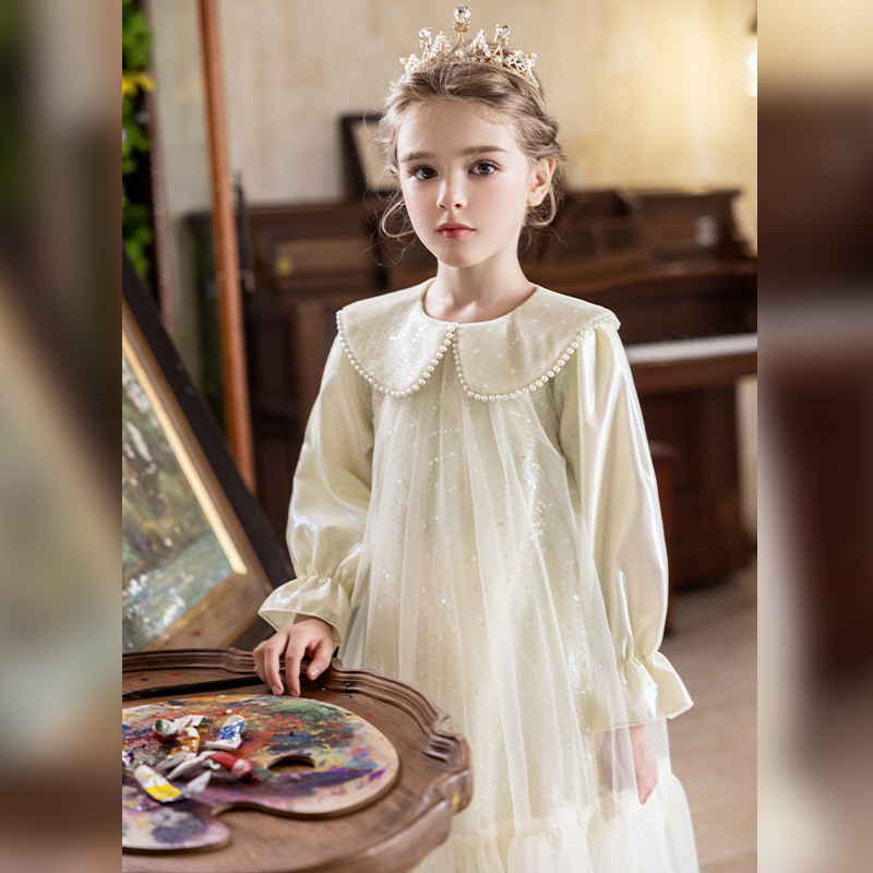 女童春秋连衣裙儿童富家千金感公主裙小女孩花童婚礼生日绝美礼服