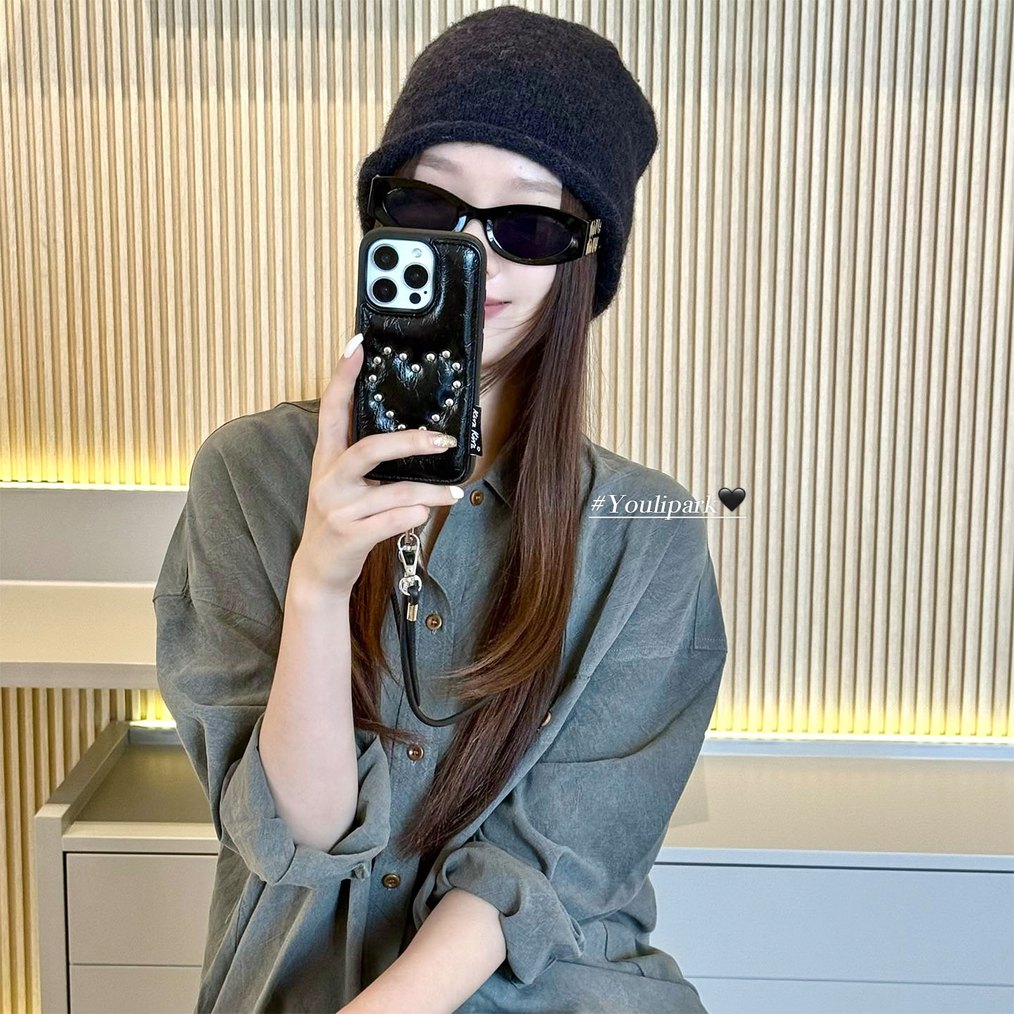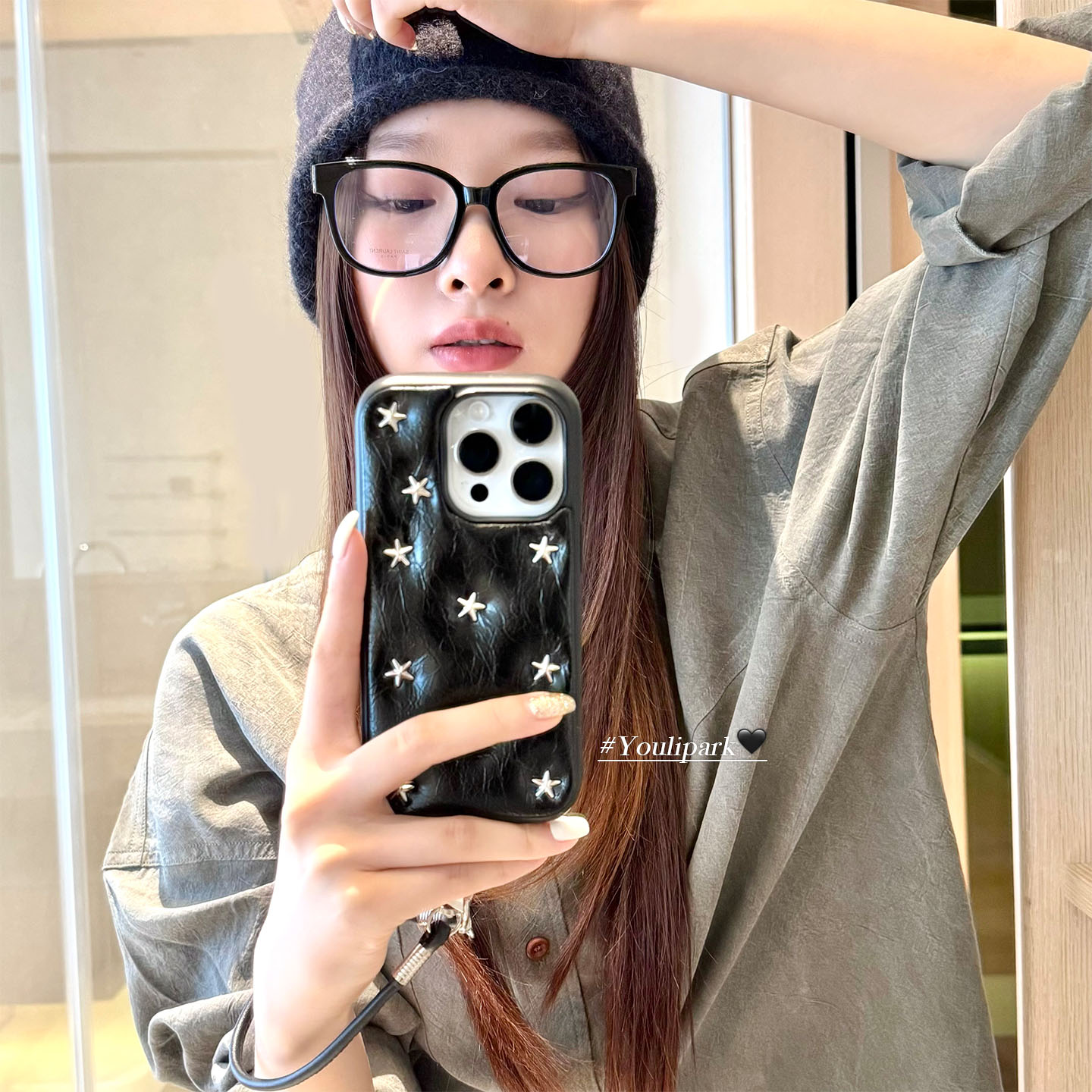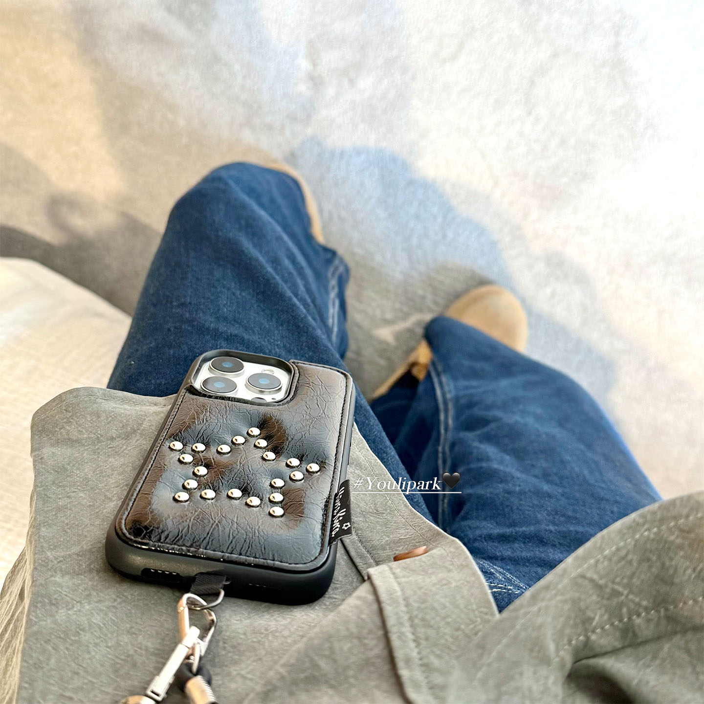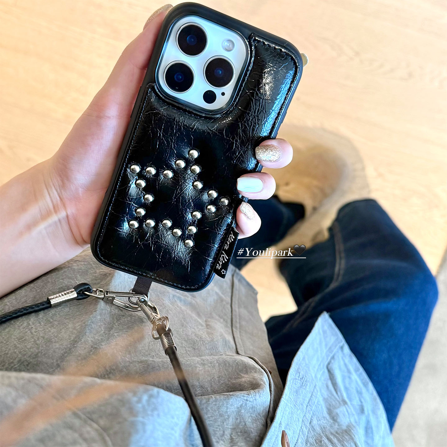 由里公园ins秋冬时髦甜酷皮质铆钉星星斜挎15适用17pro苹果17ProMax手机壳iPhone16全包17新款14Promax保护套