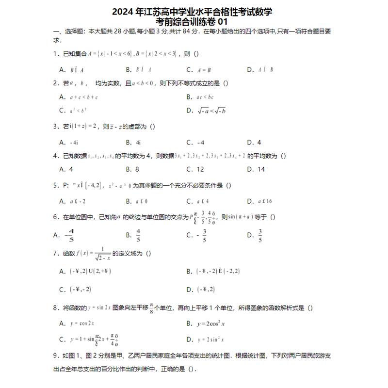 备战2025江苏省高中学业水平考试必备考点归纳与测试真模拟卷数学英语文物理化学生物政治地理电子版