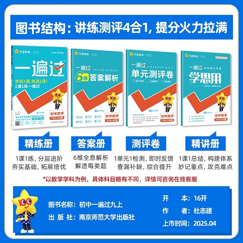 25春-2026上册下册任选初中必刷题七八九年级上下语文数学英语生物物理化学道德历史地理人教北师沪科初一二三狂k重点789全解读练