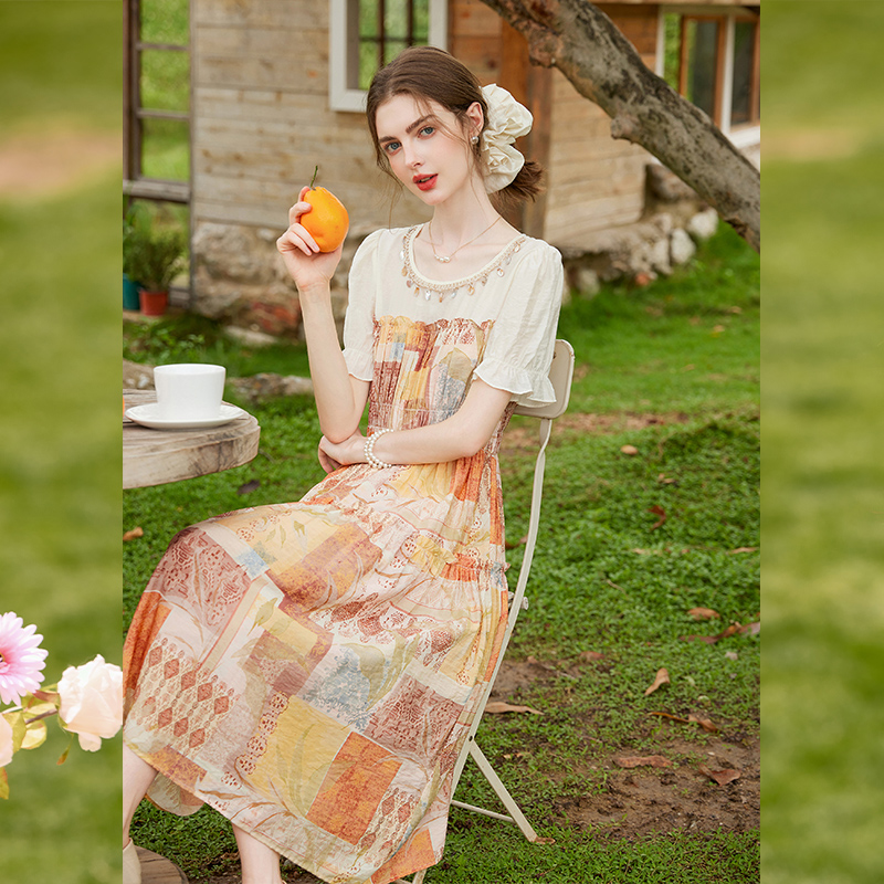SYT自制法式浪漫花朵连衣裙女夏季长裙