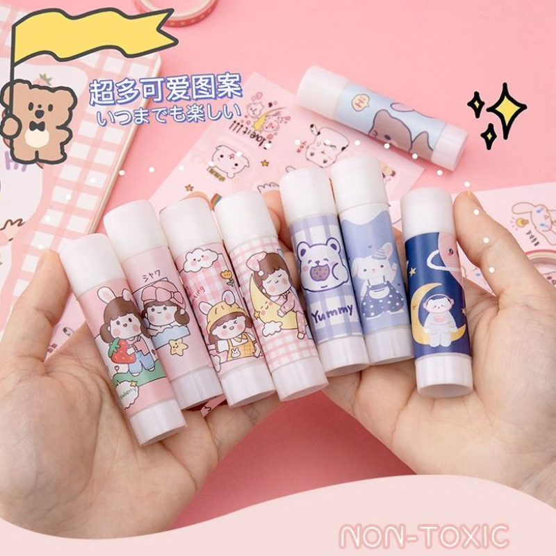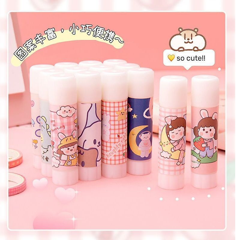 可爱固体胶棒学生专用高粘度速干手工diy多规格省力透明胶卡通图案丰富小巧便携旋转式出胶PVA材质安全无毒
