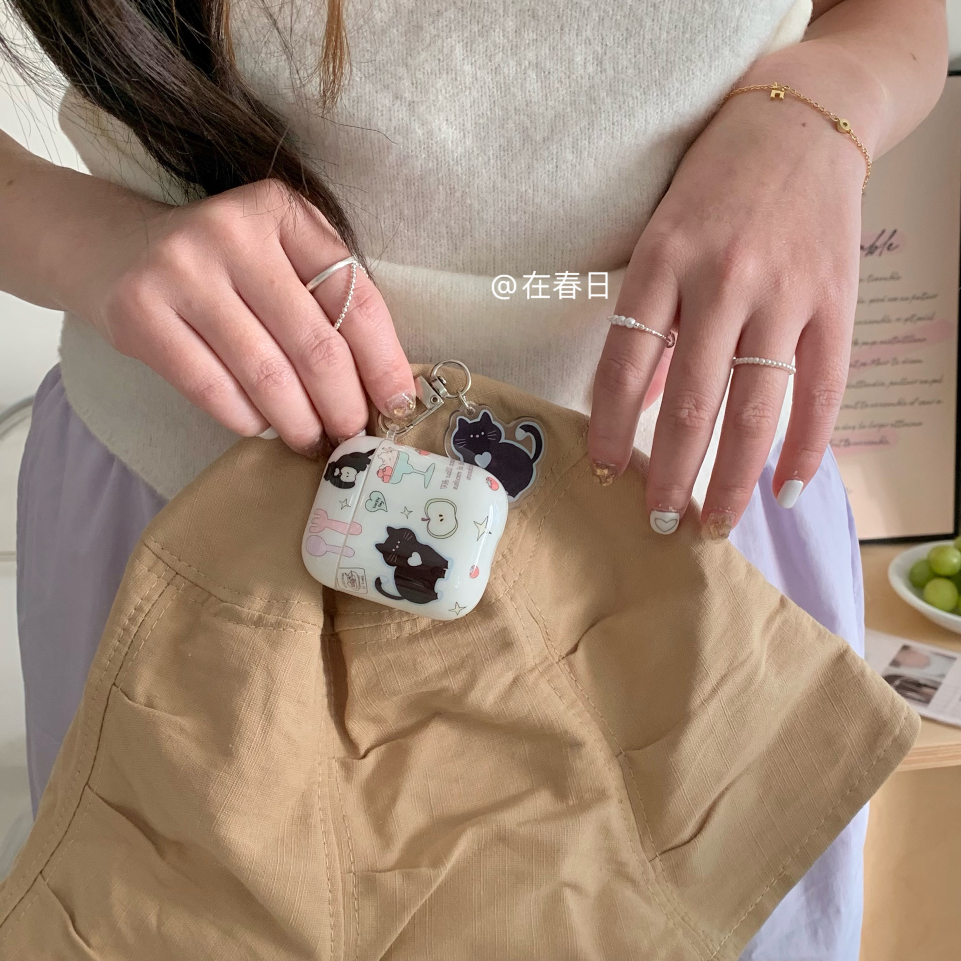 在春日韩国ins小黑猫耳机壳适用1/2/3代耳机壳保护套pro3代硅胶软壳airpods pro2代无线蓝牙保护套苹果4代