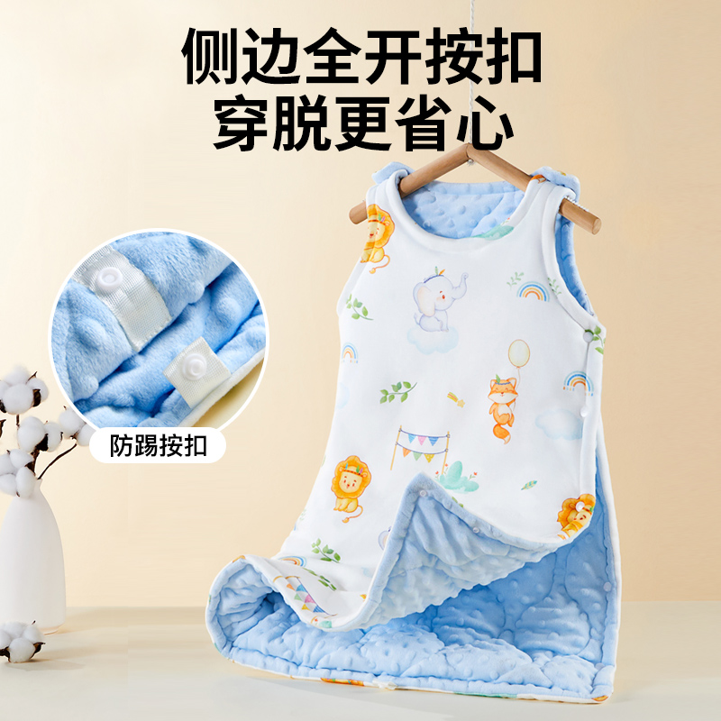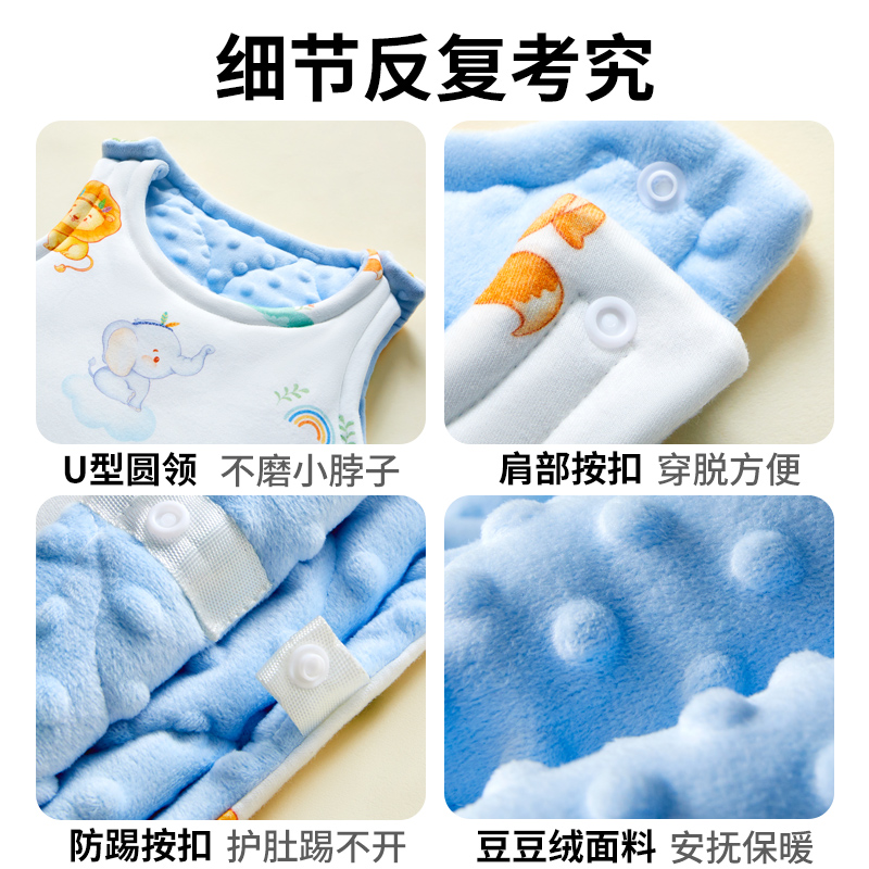 睡袋婴儿秋冬款防踢被宝宝纯棉豆豆绒加厚儿童无袖背心式被子母婴