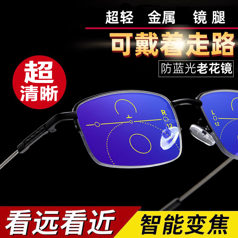 老花眼镜中老年人高清老花镜男高清防蓝光老年人女多功能自动变焦