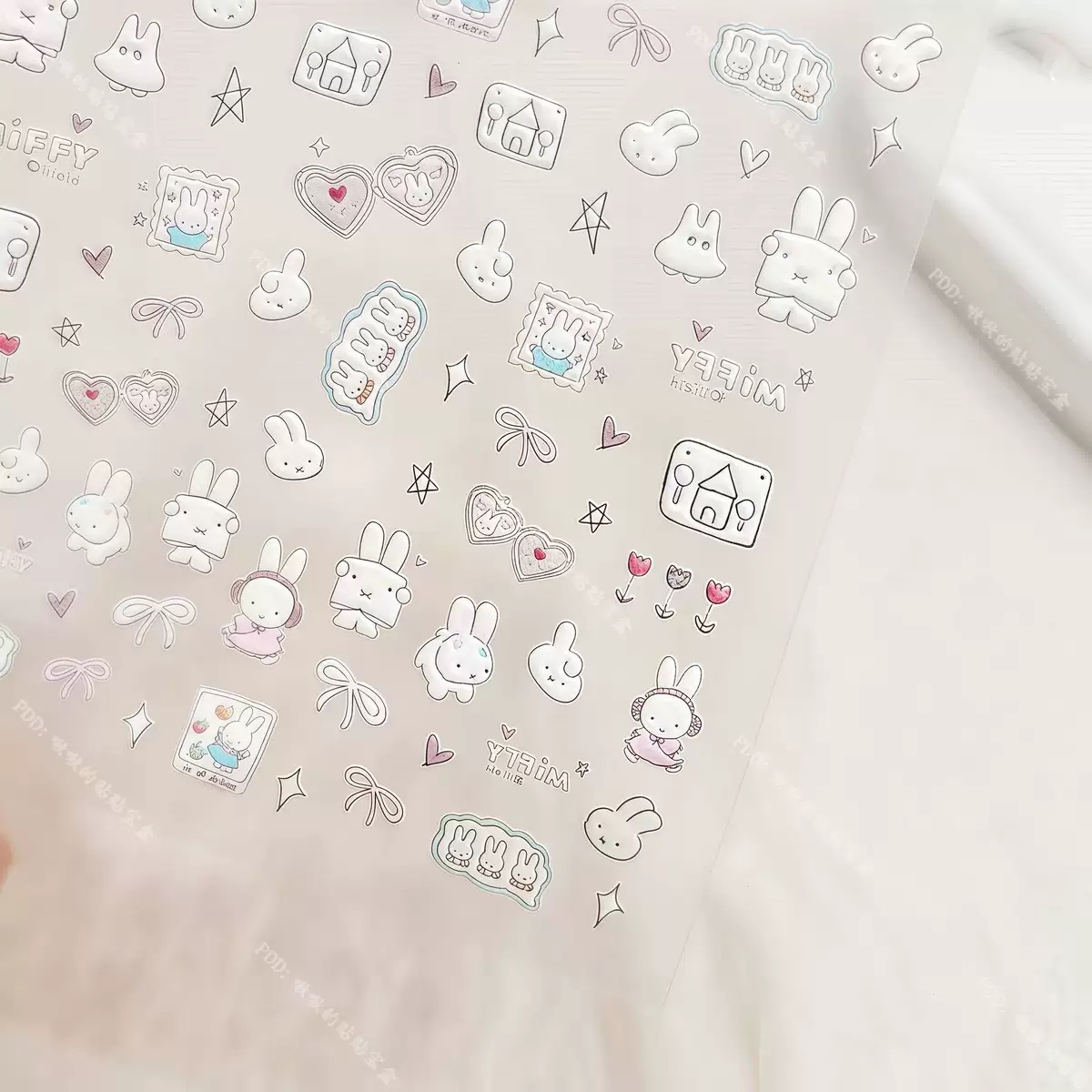可爱米菲兔兔子立体浮雕卡通美甲贴纸定制水杯ccd相机指甲贴装饰