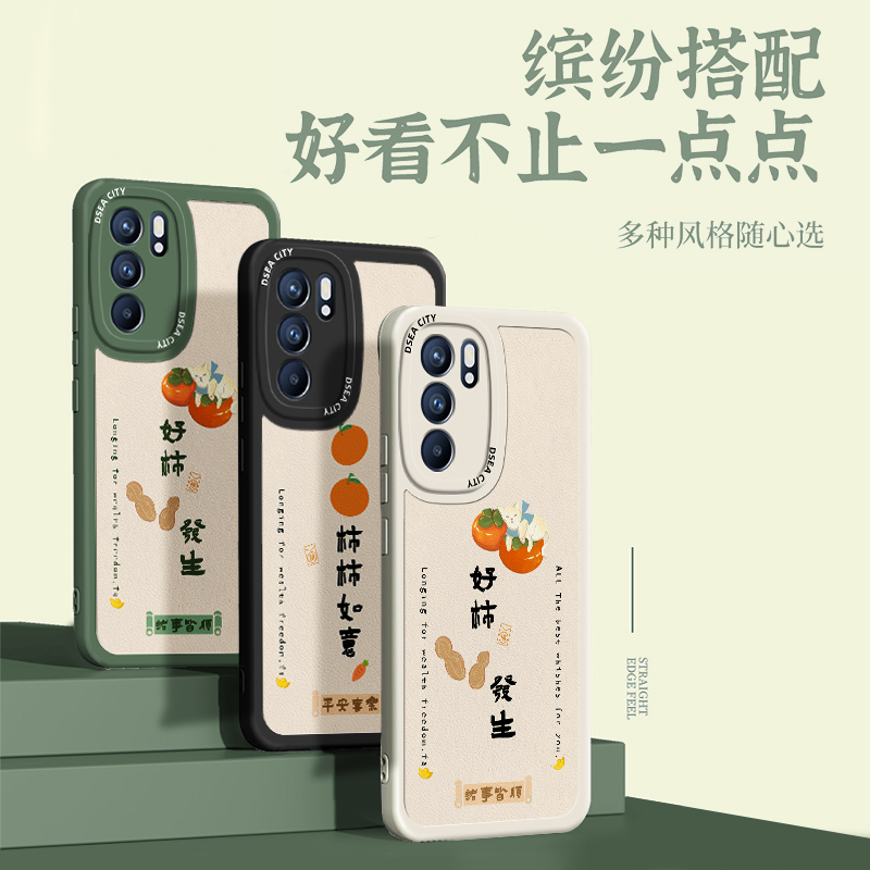适用新款oppo reno6手机壳全包镜头防摔reno6pro保护套创意OPPO国风好柿发生reno6pro+女曲面屏软硅胶外壳十