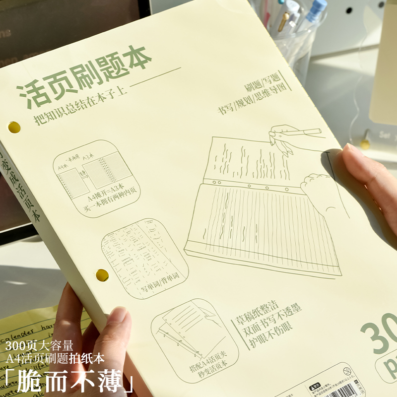 三年二班A4活页刷题本拍纸本思维导图笔记本本子错题本加厚记事本初高中生专用考研薄脆本学习用品文具高颜值