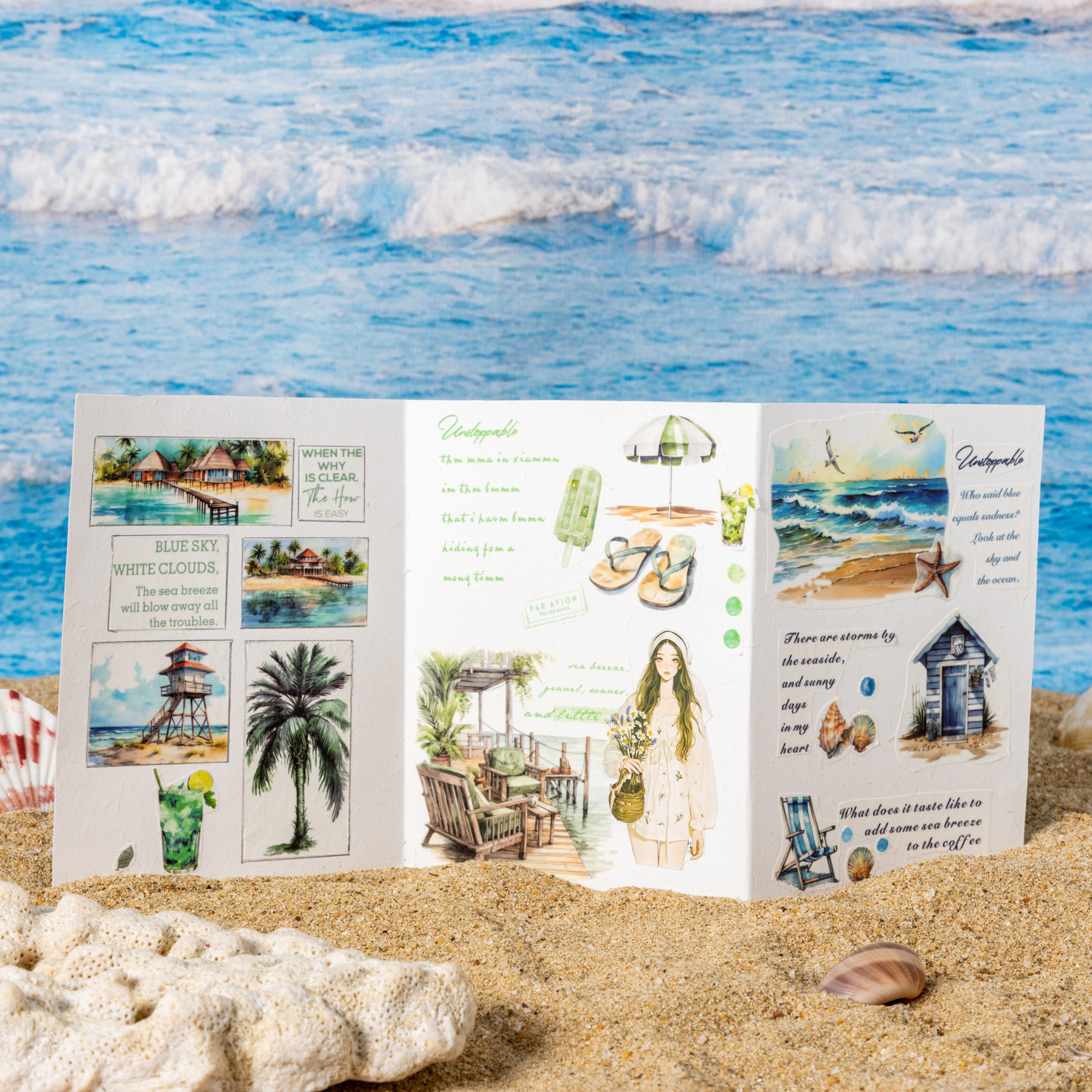 海风吹过耳边系列和纸胶带 海滩英文风景主题手账DIY装饰素材贴画