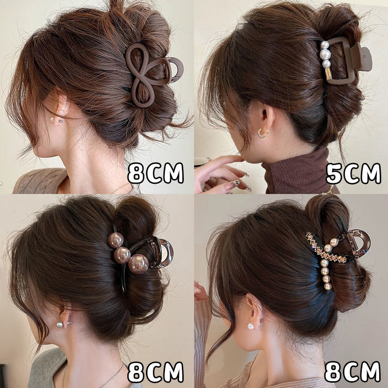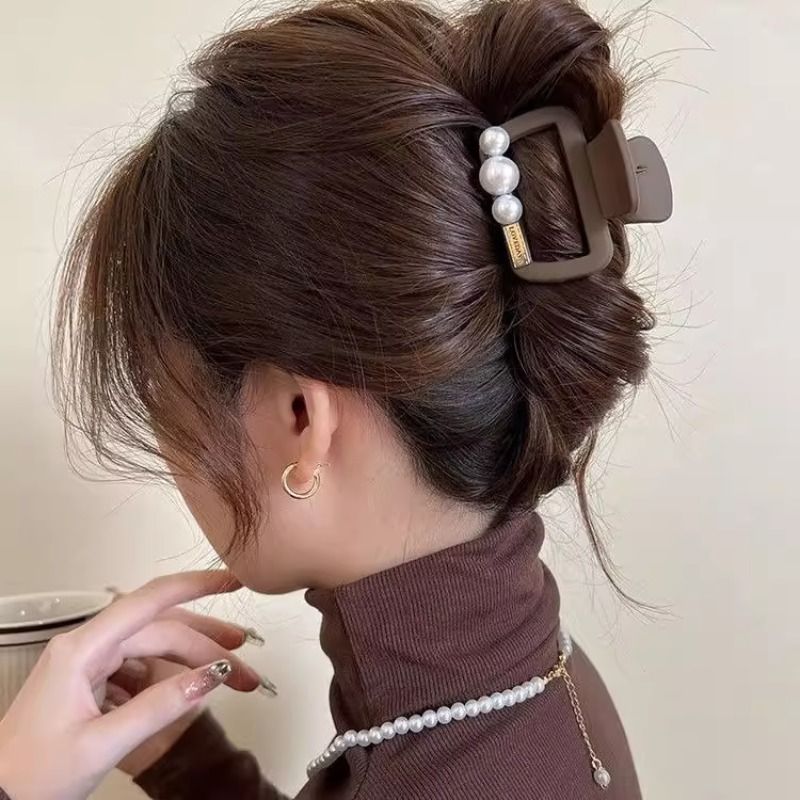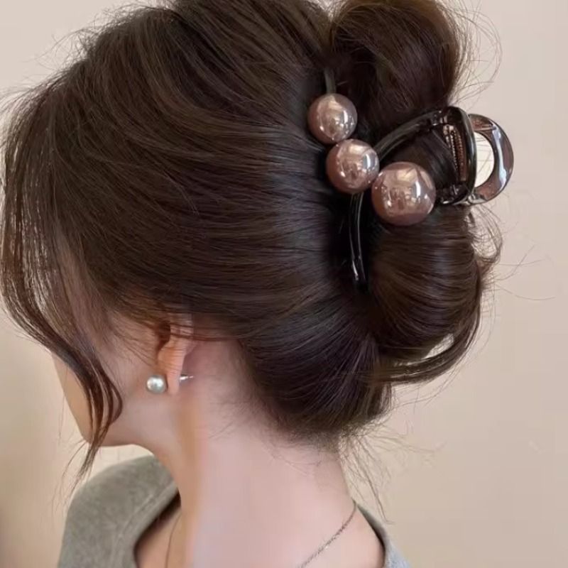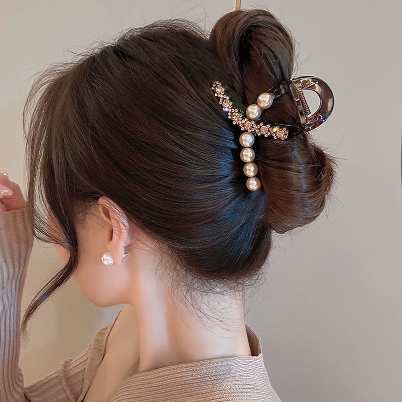 发量少优雅气质珍珠2025新款高级后脑勺盘发发夹鲨鱼夹子发饰头饰