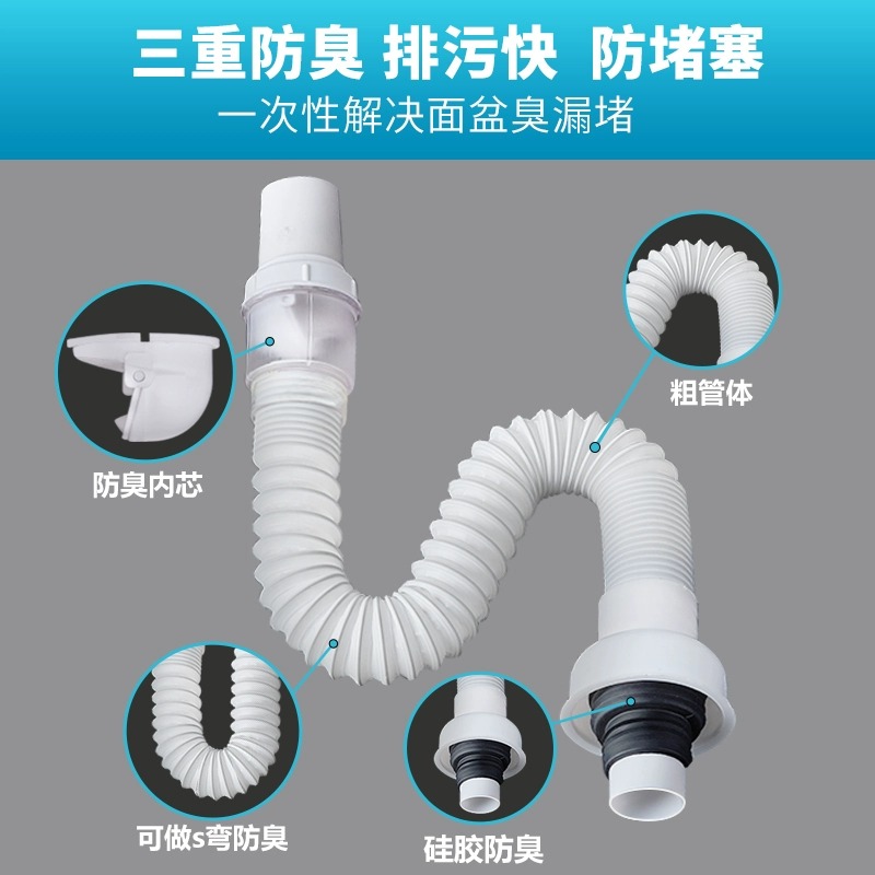面盆菜盆墩布池下水管万能伸缩塑料加长软管加厚防腐防臭排水管