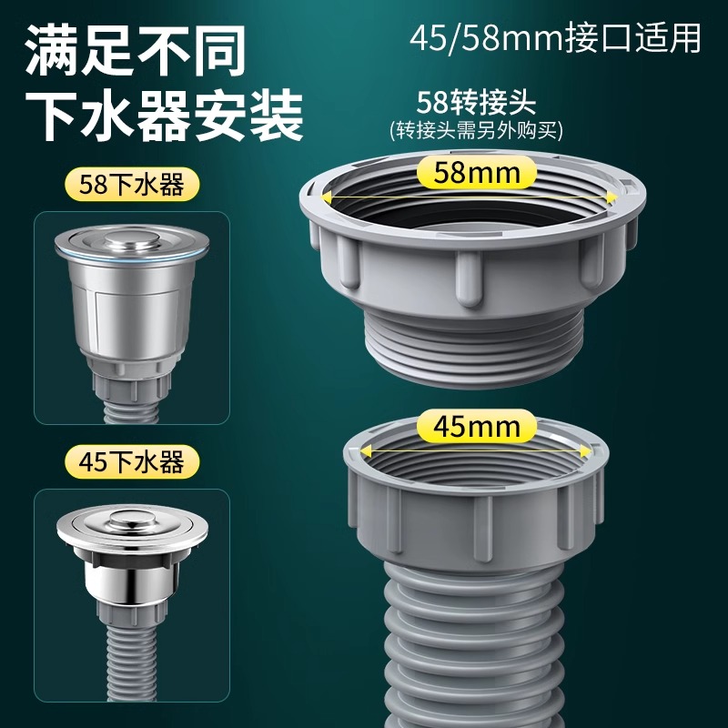 厨房洗菜盆下水管排水管配件水槽洗碗池通用下水器软套装接口螺纹