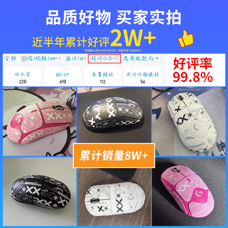 适用罗技GPW二代三代鼠标防滑贴金刚版2代狗屁王3一代1代全包贴纸