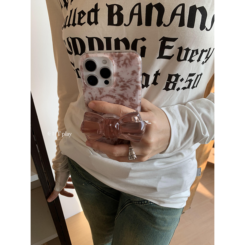 DT play 独特茶色小豹纹蝴蝶结韩国ins风小众设计博主高级适用于iphone16promax/15/14苹果13手机壳保护套