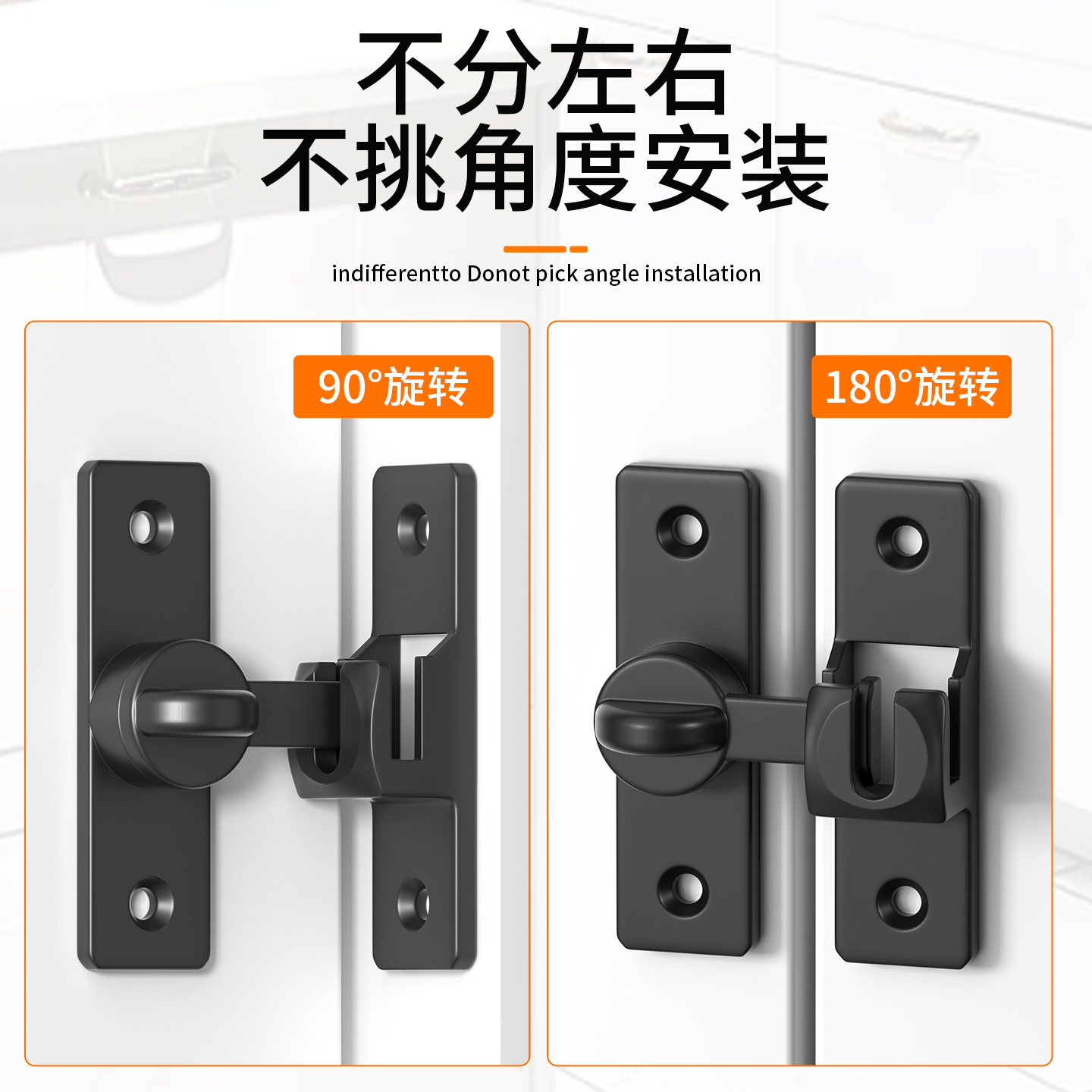 免打孔卧室门栓搭扣90度推拉移门锁卡扣明装卫生间房门锁防盗门扣