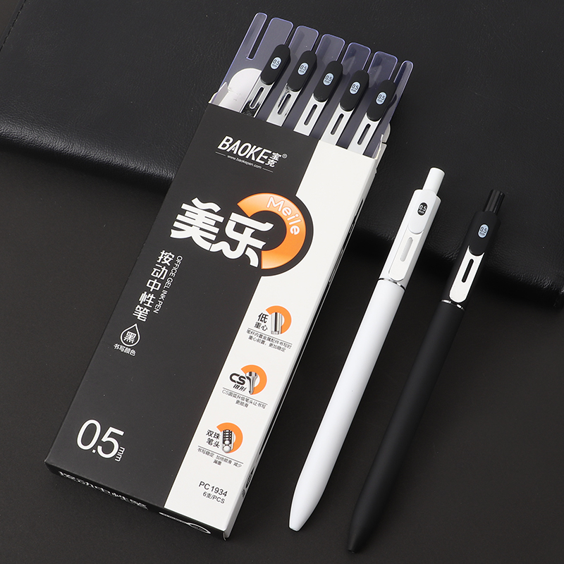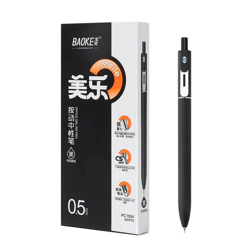 宝克(BAOKE)低重力按压中性笔文具黑笔按动刷题笔高颜值学生学习专用CS笔头双珠0.5mm大容量按动式水笔PC1934