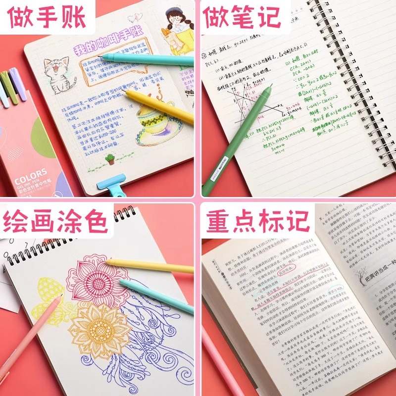 彩色中性笔莫兰迪色复古系彩笔中小学生用ins日系高颜值套装手帐标记划重点手账水笔彩色笔女生做笔记专用笔