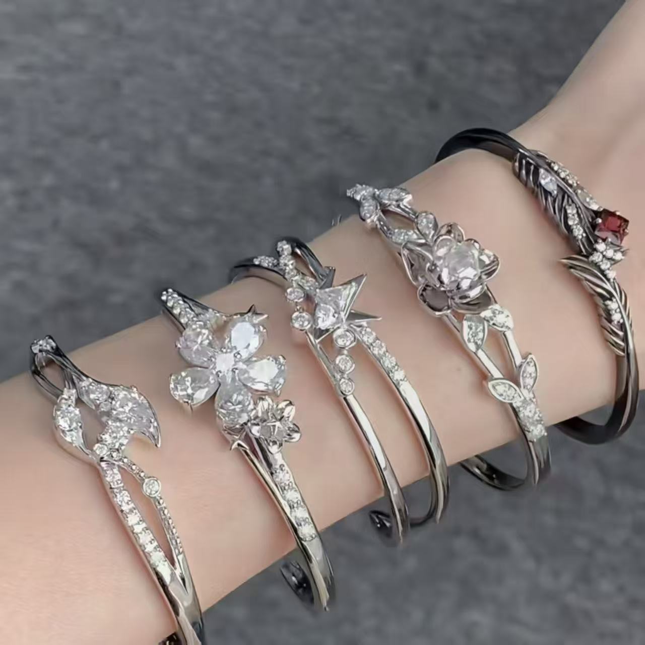 轻奢高级感满钻手镯女银色钛钢不掉色镯子手链手环新款情侣手饰品