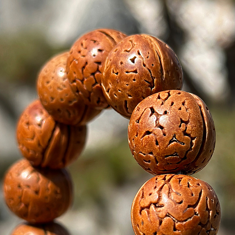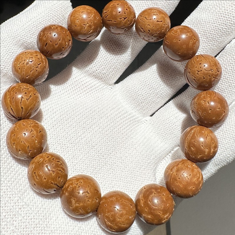 手工打磨抛光山桃核正圆珠串把件脑纹桃胡佛珠念珠男女车档位挂件