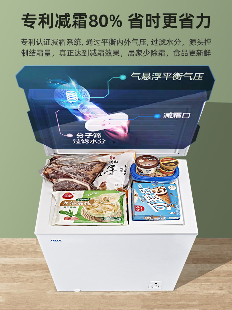 奥克斯小冰柜家用全冷冻小型商用大容量速冻冷藏两用柜卧式迷你箱