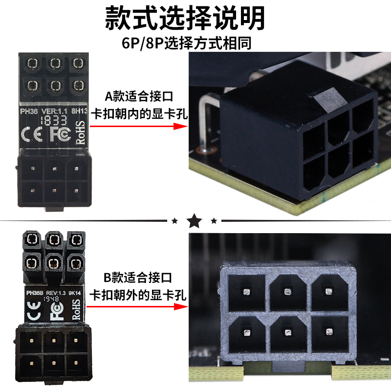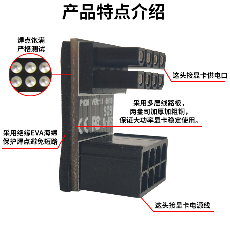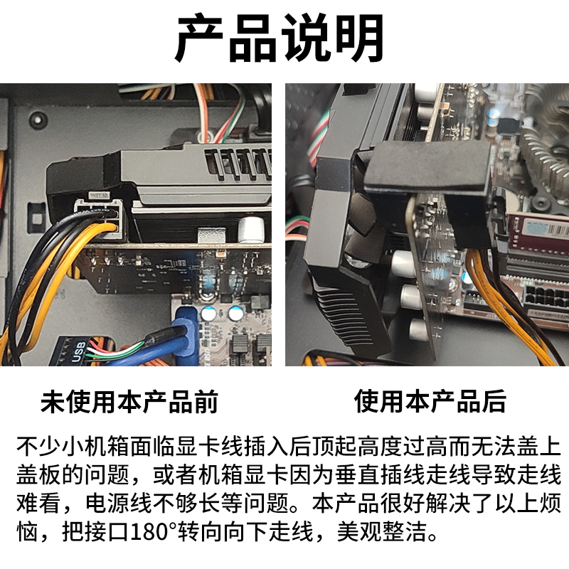 显卡6P/8P电源转向头6pin/8pin接口180度转弯头向下背部走线弯头
