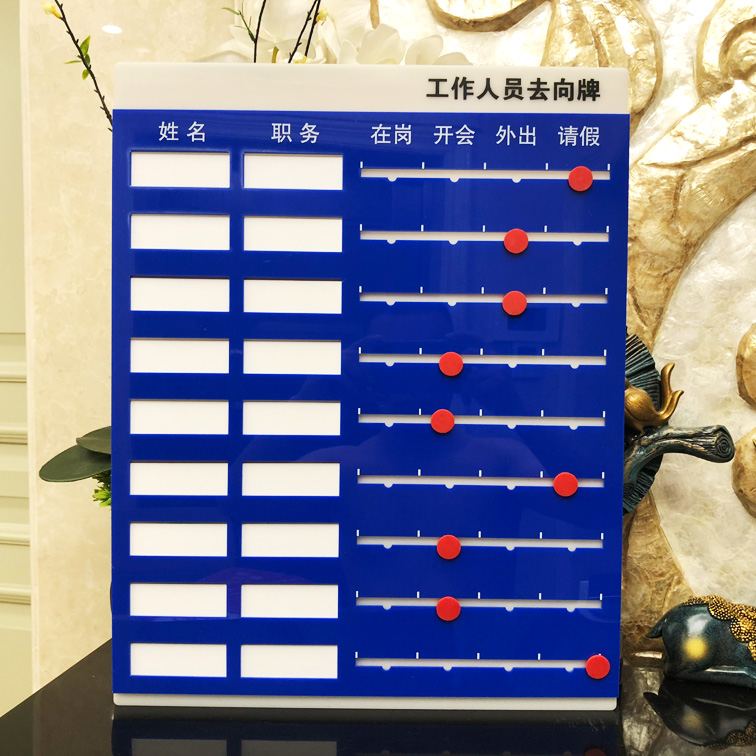 去向牌亚克力定制单位工作人员去向告知牌在岗指示牌照片可更换动向通知牌办公室人员岗位去向牌出勤牌去向板