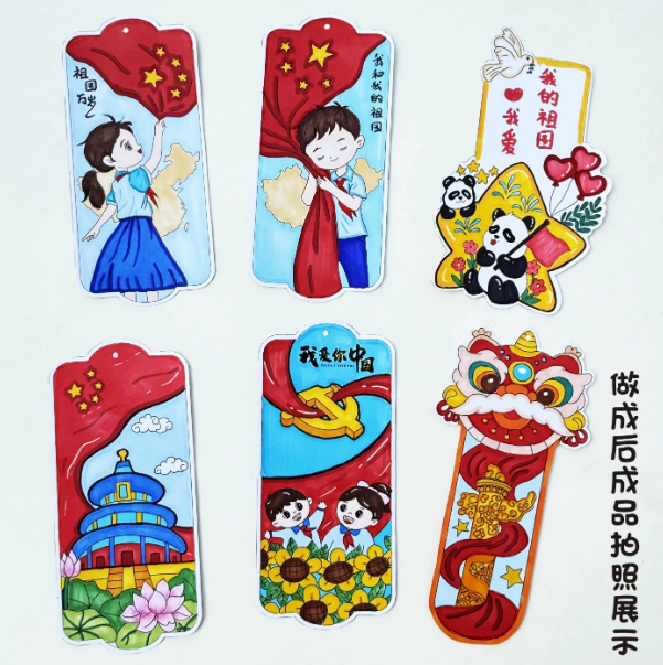 国庆节书签diy手工黑白线稿小学生涂色材料包祝福祖国华诞小礼物
