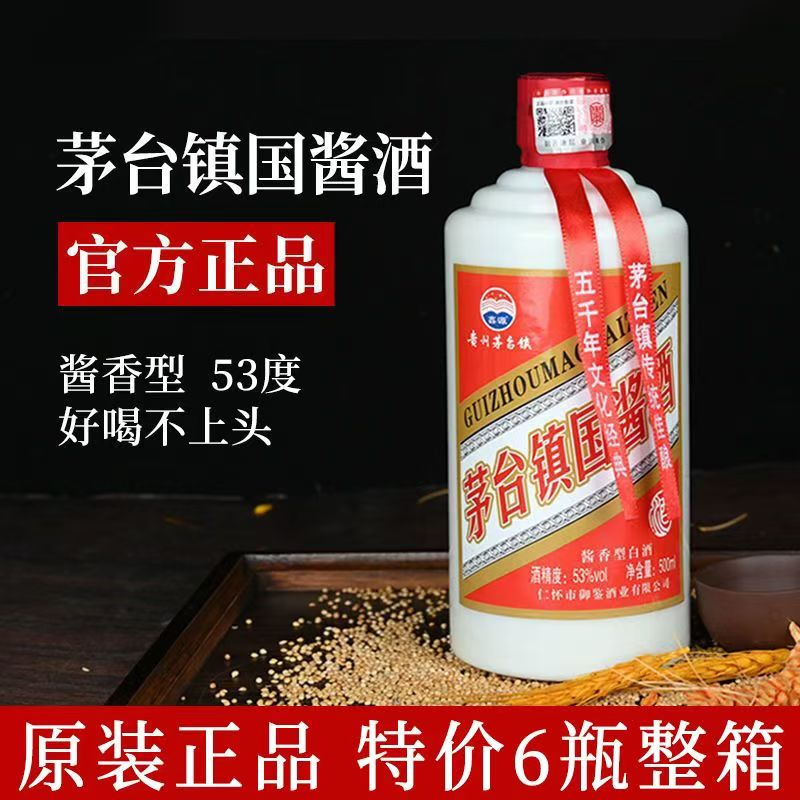 国酱酒高档白酒酱香型53度粮食高粱酒整箱6瓶装500ml送人自饮