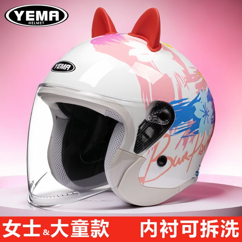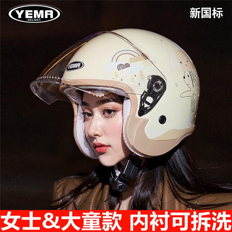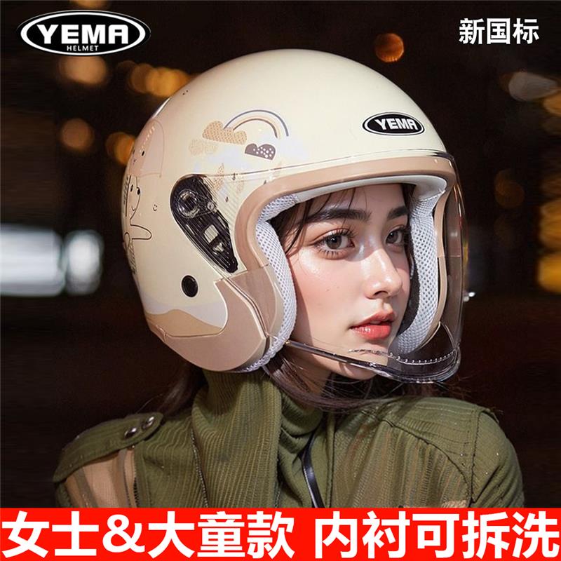 野马头盔电动车女士可爱冬季保暖摩托车半盔四分之三电瓶车安全帽