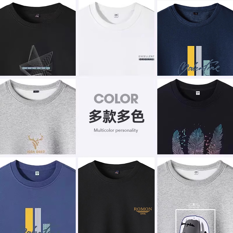 【直降】罗蒙男士圆领卫衣2025秋季新款休闲印花长袖套头打底衫男