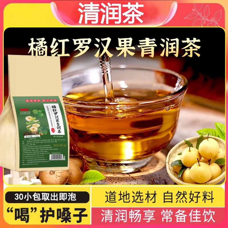 甘草罗汉果青润茶茯苓雪梨橘红桔红陈皮组合护多痰嗓养生茶包泡茶
