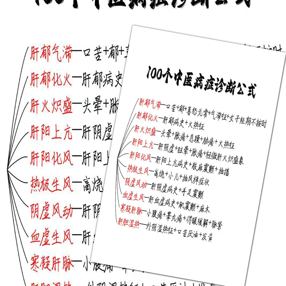 100个中医病症诊断公式】基础医学生望闻问切诊断学笔记汇总小卡