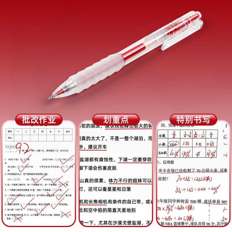 天卓红笔老师专用批改作业初中生小学生专用改题笔高颜值ins风软胶套柔软弹性握笔舒适0.5st尖顺滑书写文具类